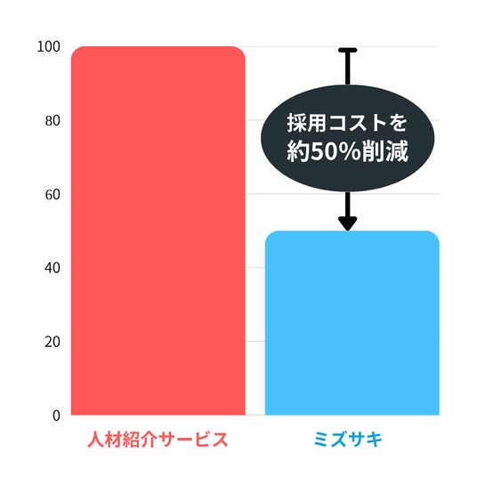 ミズサキなら、人材紹介の約半額。しかも、成果報酬型で掛け捨てリスクはありません。