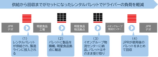 イオントップバリュ、明星食品、JPRレンタルパレットでトラックドライバーの荷役作業時間を短縮~レンタル方式でパレットを共有し物流の持続可能性を向上する取り組み~