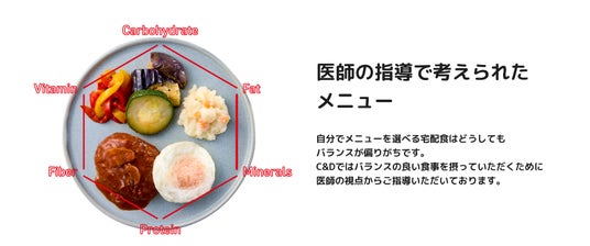 このたび、9月1日より「KITCHEN C&D」のサービスを展開いたしました。「KITCHEN C&D」は、「便利でおいしく健康的」をコンセプトに、専門医お墨付きのレシピにシェフの視点を取り入れた、栄養とおいしさを両立する冷凍宅配弁当です。健康を気遣いながらも、食事の楽しみは妥協したくない。そんな想いに応えるため、健康とおいしさの各専門家が手を取り合って生まれました。電子レンジで温めるだけの簡単さに加え、全コース1食842円のお手頃価格。さらに、糖質・塩分・たんぱく質など、ご自身の健康で気になるポイントに合わせてお好みのメニューを選べるだけでなく、食数や配送頻度も選択できるため、ライフスタイルに合わせて無理なく続けられる仕組みになっています。