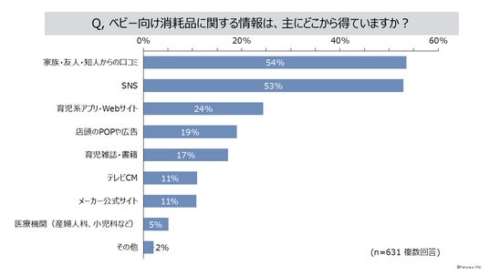 - ベビー向け消耗品に関する情報は主に「家族・友人・知人からの口コミ」「SNS」から