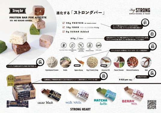 ◆ストロングバーは、 ストロングハート公式オンラインショップ 「ストロングハートショップ」(https://strongheartshop.com/)、各種ECサイトや一部コンビニエンスストア店頭、茅ヶ崎の直営店舗「ストロングハウス」(https://www.instagram.com/strong_house18)