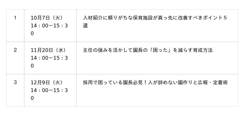 - 人材育成・チーム運営力を強化し、保育園運営を円滑化する