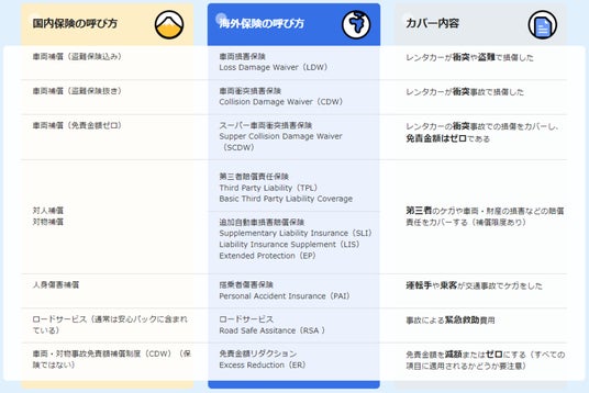補償内容には、人身傷害・財産損害・車両破損・ゼロ免責オプションなどが含まれ、日本語対応可能なサポート体制も整っています。