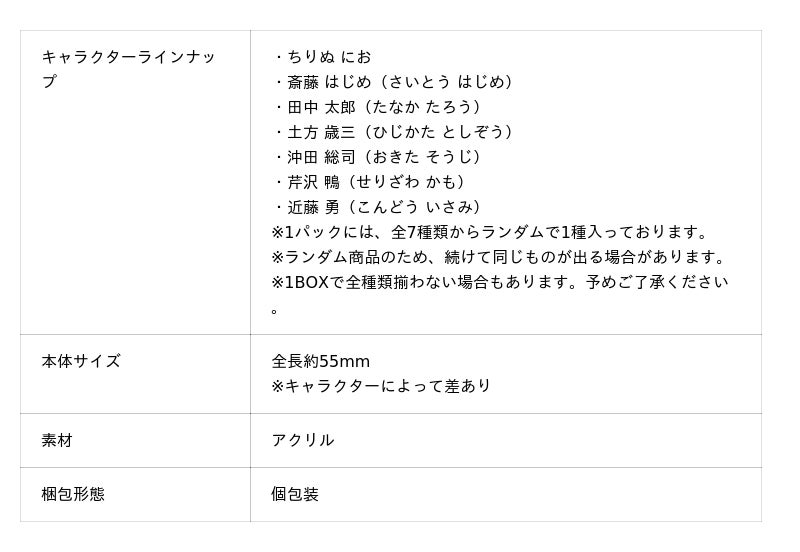 トレーディングもにゅもアクリルスタンドは、全7キャラクターにて展開中です。