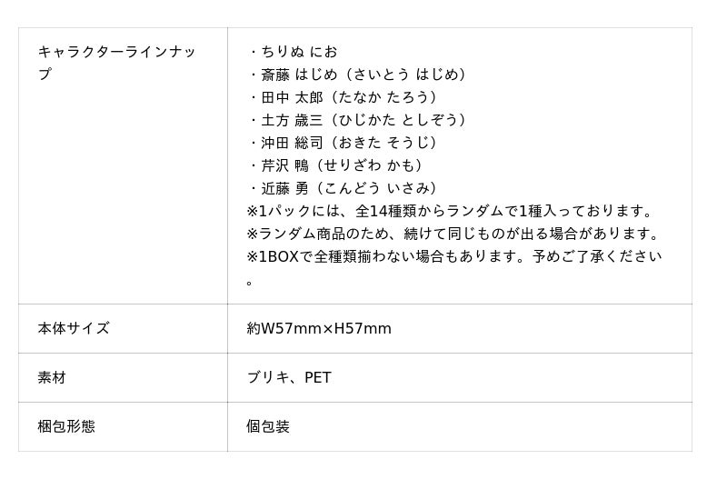キャラクターの衣装をイメージしたデザインで仕上げたシュシュ。ボリューム感のあるサイズが特徴で、髪に結ぶとふんわり存在感をもたらすアイテムです。さらに、「誠」の文字入りのアクリルミニ衣装チャーム付きで、アクセサリー感覚で手首につける、チャーム部分のみをポーチやカバンにつけるなど、さまざまな楽しみ方ができます。