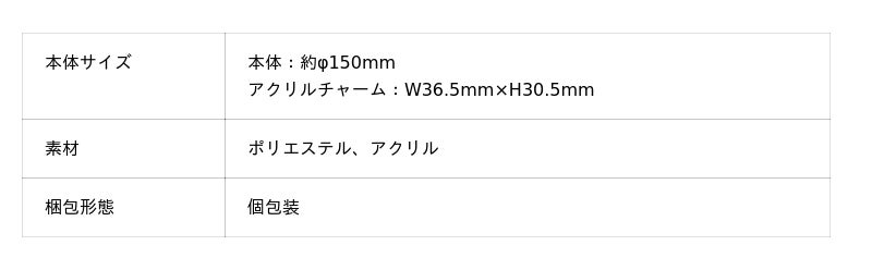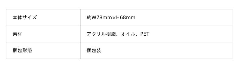 ビーンズ型の本体に封入されたラメが、傾けるたびにきらめくアクリルブロック。動きとともに目を惹くデザインが特徴です。厚さ約1cmのしっかりとした仕様のため、自立が可能でデスクや棚にそのまま飾ってお楽しみいただけます。飾るだけで空間に彩りを加え、キャラクターの存在をより身近に感じられるアイテムです。