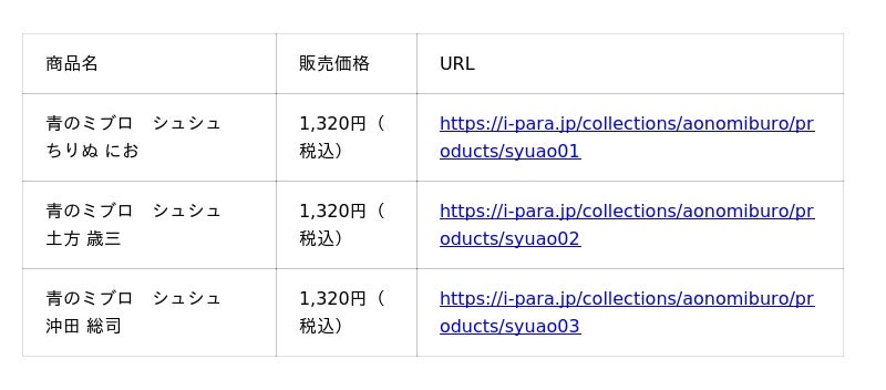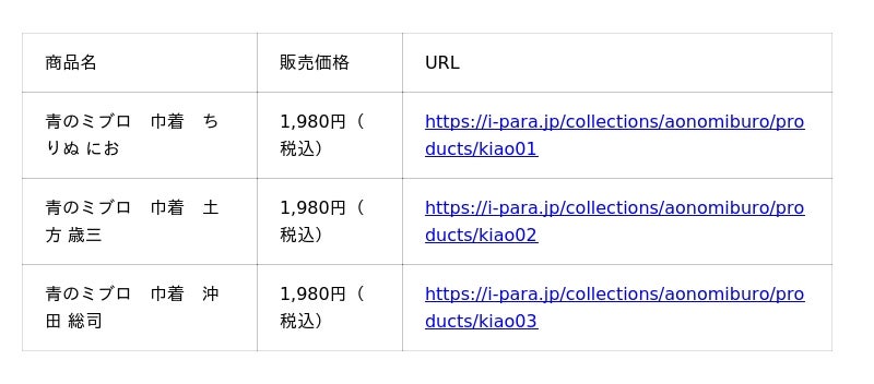 オリジナルグッズを企画製作するアイグッズ株式会社(本社:東京都渋谷区)は、TVアニメ『青のミブロ』のオリジナルグッズ5種の先行予約受付を、2025年9月上旬より開始します。ラインナップは、「トレーディングもにゅもアクリルスタンド」「トレーディングもにゅも缶バッジ」「キュるん」「シュシュ」「巾着」です。当社ECサイトである「アイぱら」で展開します。