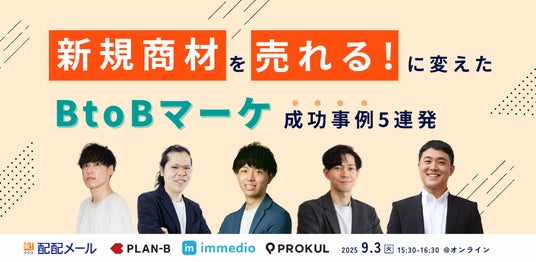 株式会社immedio(本社:東京都港区、代表取締役:浜田 英揮、以下 immedio)は、2025年9月3日(水)に開催される「新規商材を「売れる」に変えた!BtoBマーケ成功事例5連発」に登壇します。