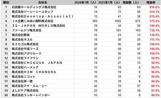 ・2024年1月時点と2025年1月時点の従業員数を比較