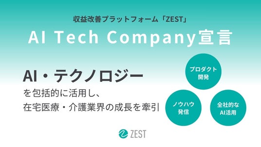 在宅医療・介護の経営・運営改善プラットフォーム「ZEST」を提供する株式会社ゼスト(本社:東京都新宿区、代表取締役社長 CEO:一色淳之介)このたび「AI Tech Company」として、AIをはじめとする先進技術を活用し、在宅医療・介護業界の課題解決と成長を牽引していくことを宣言します。