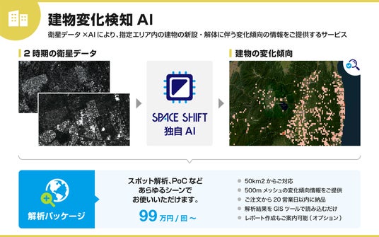 【正式提供開始】衛星データをもっと使いやすく、もっと便利な社会に ─スペースシフト、衛星データ×AI解析を標準パッケージ化 建物変化検知AI/遊休農地探索AIを提供開始