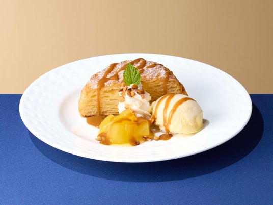 甘酸っぱいりんごのコンポートとほろ苦い塩キャラメルソース、優しい甘さのバニラアイスがマッチした、秋にぴったりなココッシュをハーフサイズでご用意しました。シャキッとしたりんごとサクサクのココッシュの食感が楽しい一品です。