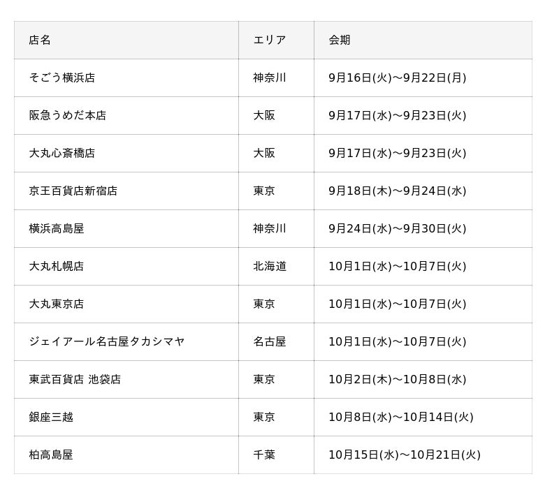 ※営業時間は上記店舗に準ずる