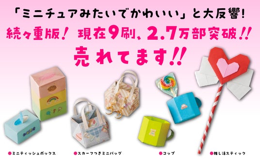 心ときめく「ミニチュアおりがみ」本の勢いが止まらない! 発売以来、続々重版で9刷、2.7万部突破! 全作品に作り方動画つきでわかりやすい! 秋の夜長、手のひらサイズの「キュン」を作ってみませんか?