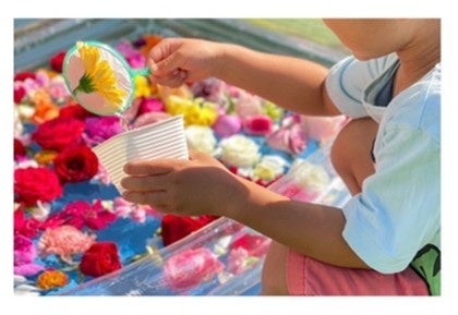 本イベント限定で、生産現場や店頭の規格外となってしまったフラワーロスの花を浮かべた「お花すくい(=お花救い)」を実施します。大人も子どもも、楽しみながら「掬って救う」体験にぜひお立ち寄りください。また、透明なエアパッキンにカラフルなバラを入れた、持ち歩いている姿も可愛い「ROSE POMPOM」の販売も行います。
