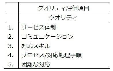 ・ 評価基準: クオリティ評価5項目について、4点~1点評価