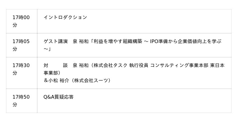 1.スーツアップ特別ウェビナー「利益を増やす組織構築 ~ IPO準備から企業価値向上を学ぶ~」概要