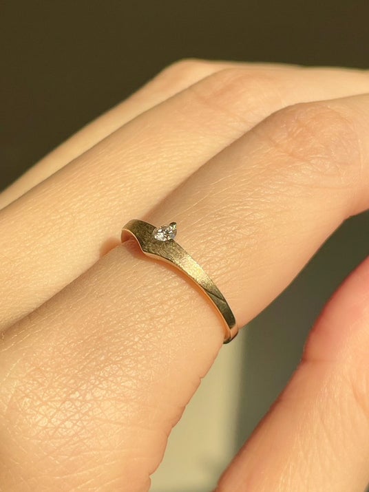 シンプルなようで、なだらかなカーブやシャープな先端、ダイヤが金属から半分浮き出しているデザインなど、細かな部分でこだわりが施されています。