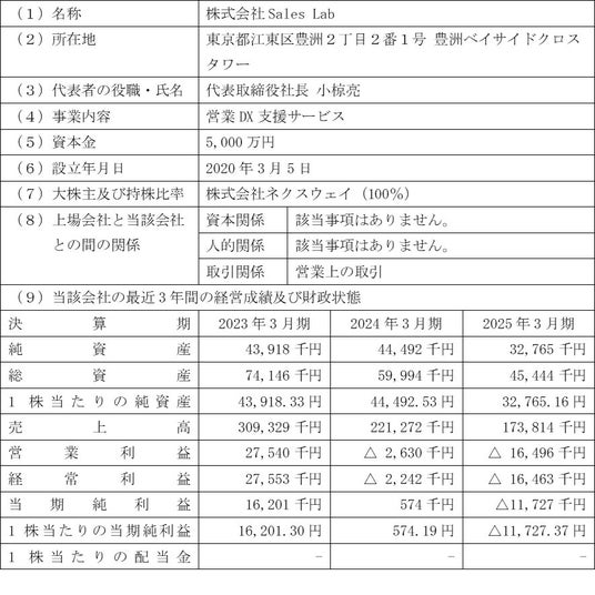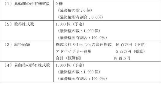 株式会社 Sales Lab の株式の取得(子会社化)に関するお知らせ