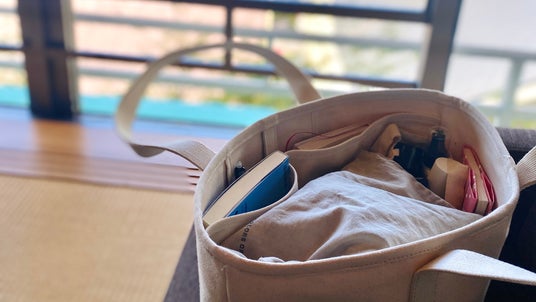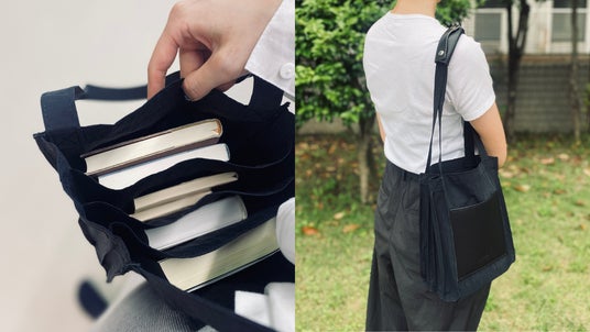 読書泊トートバッグ「読むために泊まる」という贅沢な旅=“読書泊”を楽しむために生まれた、大容量のトートバッグ。一見シンプルなデザインながら、内側には複数の本を整理して収納できるポケットなど、読書家のための工夫を随所に施しています。
