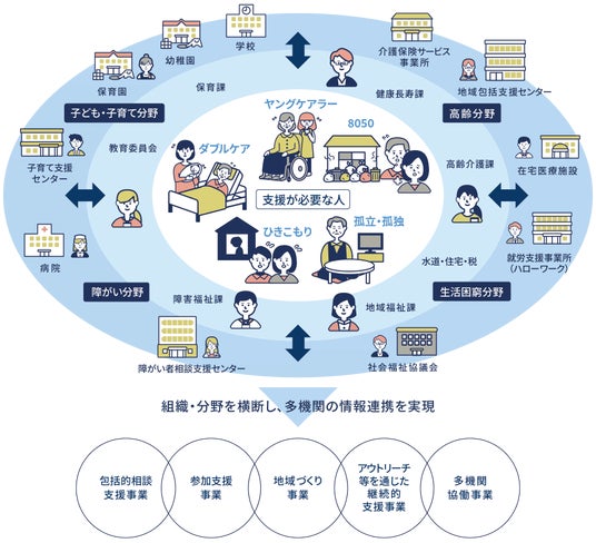 今後は、市内の行政機関ならびに医療・福祉・介護・学校等、支援機関への利用拡大を検討し、重層的支援体制整備を推進していきます。