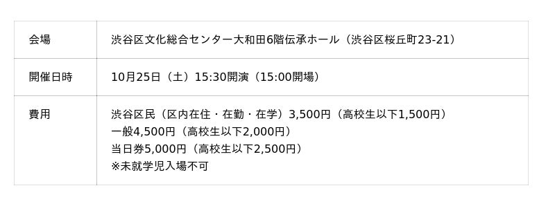 ※渋谷区民チケットは、ホール事務室での購入のみ(在住・在勤・在学を証明できるものを持参)