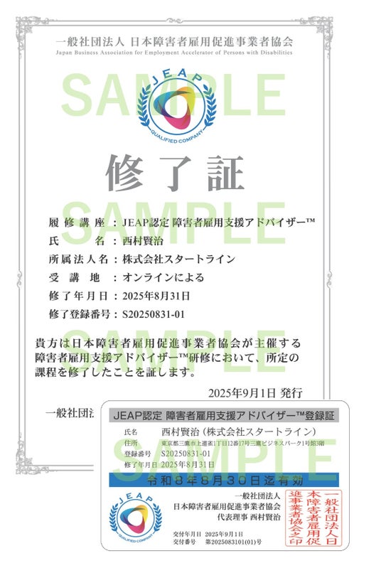 一般社団法人日本障害者雇用促進事業者協会(東京都三鷹市 代表理事:西村賢治、以下「促進協」)は、業界の健全な発展とサービス向上を目的に、「JEAP認定 障害者雇用支援アドバイザー(TM)」研修制度を創設いたしました。