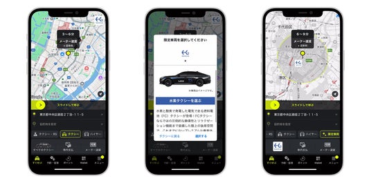 タクシーアプリ「S.RIDE(R)」、都内で「水素タクシー」の配車が9月3日より可能に