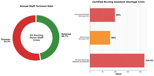 図1. 離職率53.3%と米国ナーシングホームにおける介護職種ごとの高い年間離職率