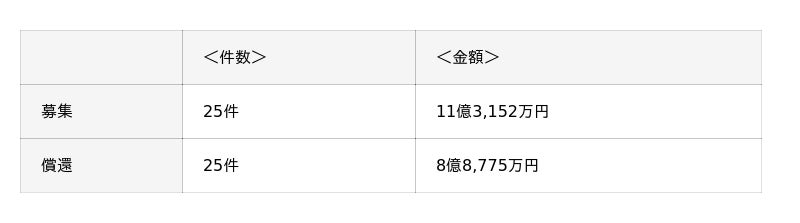 償還件数・金額についても順調に推移しており、約2億5千万円の運用金額増加となっています。
