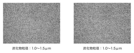 球状炭化物の大きさは約1.0~1.5μmで、一般的なナマシ仕上と同等です。(写真3、SK85Mの例)