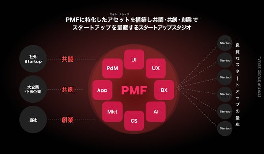 PMF(立ち上げからPMFまでの01フェーズ)に特化した事業・プロダクト・マーケティングのエキスパートが共闘・共創・創業で良質なスタートアップを量産するスタートアップスタジオです。