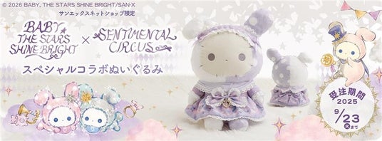 サンエックス株式会社(本社:東京都千代田区)は、センチメンタルサーカスが今年15周年を迎えたことを記念し、ロリィタ服ブランドの「BABY, THE STARS SHINE BRIGHT」と「センチメンタルサーカス」がコラボしたスペシャルぬいぐるみを9月5日(金)10時頃より当社のECサイト「サンエックスネットショップ」限定にて受注販売開始することをお知らせします。