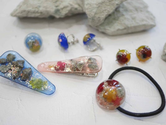 【石アクセサリー作りワークショップ(普門閣にて)】小松の石や九谷焼を用いたアクセサリー制作。子どもから大人まで楽しめ、旅のお土産にも。