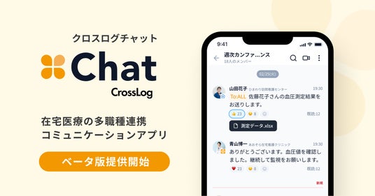 クロスログ株式会社(代表取締役CEO:宮原智新、以下「クロスログ」)は、在宅医療における多職種コミュニケーションの課題を解決する新サービス『CrossLog Chat(クロスログチャット)』ベータ版の提供を開始しました。