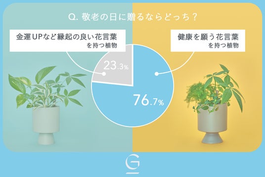 敬老の日に贈るなら「健康を願う花言葉を持つ植物」か、「金運UPなど縁起の良い花言葉を持つ植物」かアンケートを実施しました。結果は「健康を願う花言葉を持つ植物」が多数派となりました。
