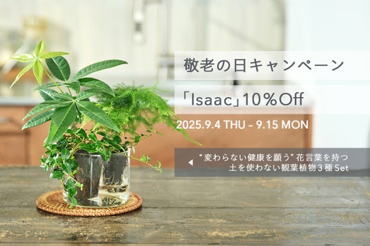 敬老の日キャンペーンとして、変わらない健康を願う花言葉を持つ植物の寄せ植え「Isaac」を9/15(月)まで限定価格で販売します。