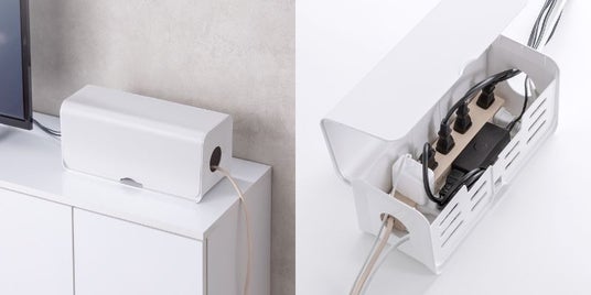 テレビ裏やデスク周りで散らかりがちなケーブルや電源タップを、ひとつにまとめて収納できます。乱雑な配線を隠すことで空間が整い、インテリア性もアップ。来客時にも安心して見せられる、清潔感あふれる環境を実現します。