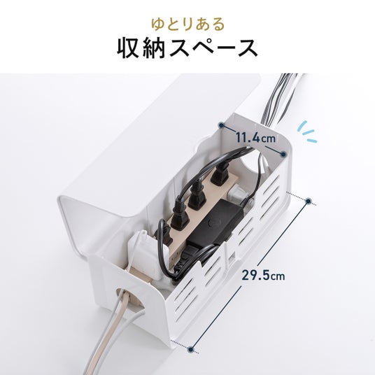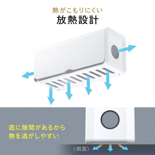 左右に配線口を設けているので、必要なケーブルを自在に引き出せます。さらに底板のスリット構造により通気性を確保。熱がこもりにくく、安全に使用できる点もポイント。電源周りを快適かつ安心して整えられます。