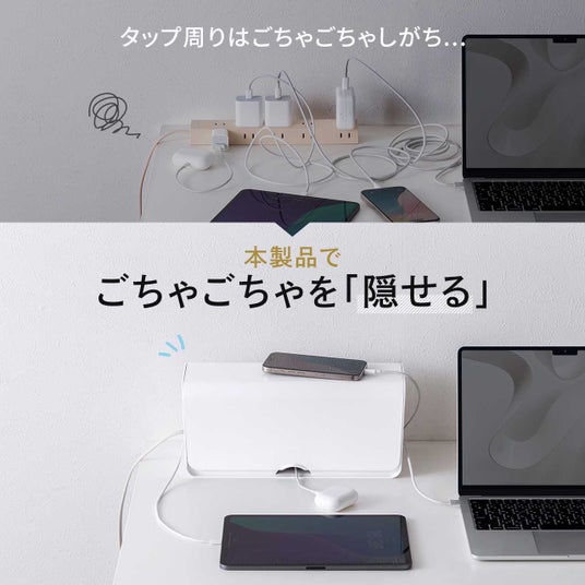 ケーブルボックス 電源まわり 目隠しボックス タップ収納ボックス ケーブル収納 幅32cm 充電ステーション ABS樹脂 ポリカーボネート
