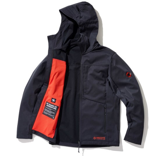 2000年の発売から、素材の進歩や時代の流れに合わせてアップデートを繰り返し、長きにわたり多くの方に愛されてきたマムートの大人気ソフトシェルジャケットがさらに進化した8代目となり、誕生から25年を迎えました。ソフトシェルというプロダクトを世に初めて送り出したマムートが展開する、確かな性能と実用性を兼ね備えた「アルティメイト シリーズ」は、まさに「究極」と呼ぶにふさわしい一着です。今回は、その中でも人気のフーデッドジャケットをベースに、黒と赤を基調としながら25周年の特別デザインを施しました。マムートファンの方以外にも、オススメできる一着に仕上がっておりますので、是非、ご覧ください。