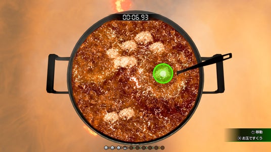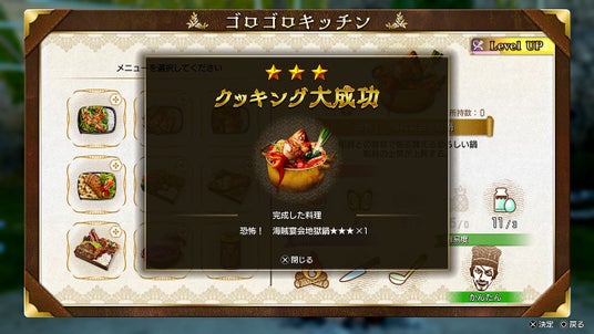 ゴロゴロキッチンでは、街中や海を探索して得た食材で最高の料理を作ることができる。作りたい料理によって調理方法は様々で、「火起こし」や「包丁捌き」、「アク取り」など調理方は様々。完成した料理には体力回復やヒート回復などの効果がある。