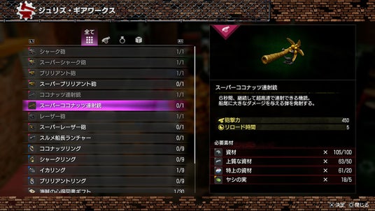 ハワイにある「ジュリズ・ギアワークス」という施設では、集めた素材を使って、船の大砲や真島の指輪などの装備を作ることができる。これらの装備はここでしか手に入らない強力なものなので、素材が揃ったら装備を作りにいこう。
