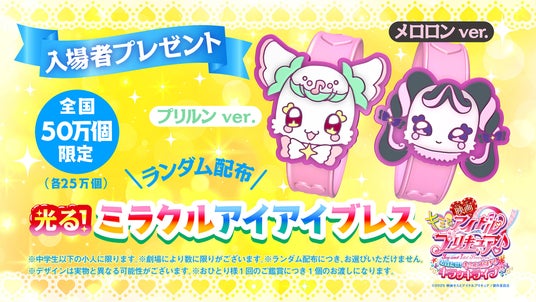 『映画キミとアイドルプリキュア♪ お待たせ!キミに届けるキラッキライブ!』を見に行くともらえる、来場者プレゼントのミラクルアイアイブレスを持ってかっぱ寿司に行こう!かっぱ寿司でお会計の際にミラクルアイアイブレスを提示+税込3,000円毎のお会計で「キミとおでかけ♪クリアカード」を1枚プレゼントします♪