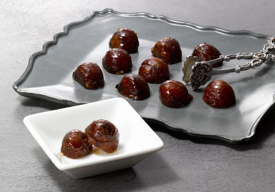 琥珀マロン(2個)200円(税込220円)店舗でひとつひとつ渋皮栗をキャラメリゼした「琥珀マロン」は、周りがカリっと中はほっくりとした食感が特徴的です。マロンデザートをご注文のお客様だけの特別メニューです。お好きなマロンパフェにお好きなだけ追加してお楽しみください。