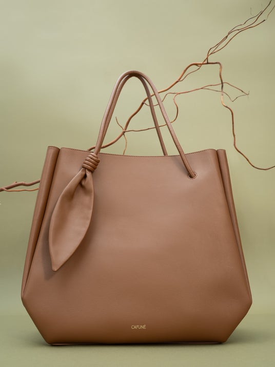 植物の茎のように曲線的なチューブ状のハンドルや葉っぱのノットディテールがアクセントを加え、 Cafuneのブランドアイデンティティである自然の生命力と静かな変化を表現しています。