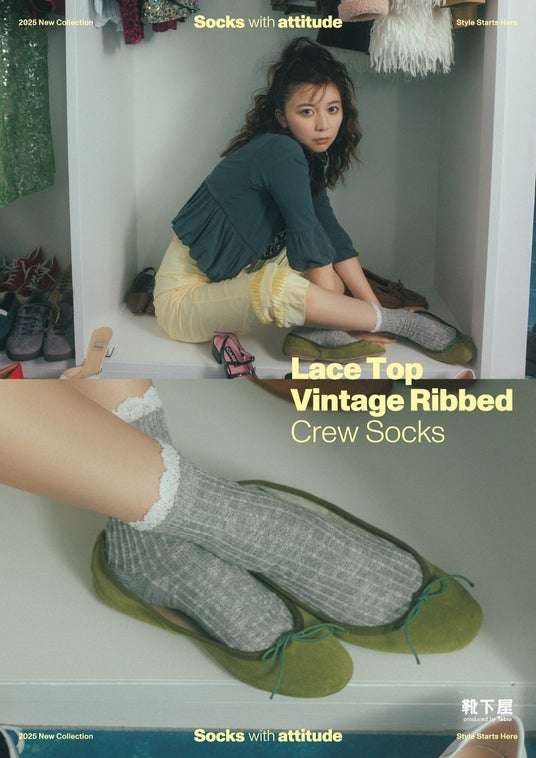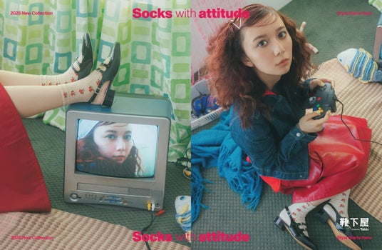 靴下屋のこの秋冬ビジュアルは、「靴下も“主役”になれる」というメッセージを込めて制作されました。