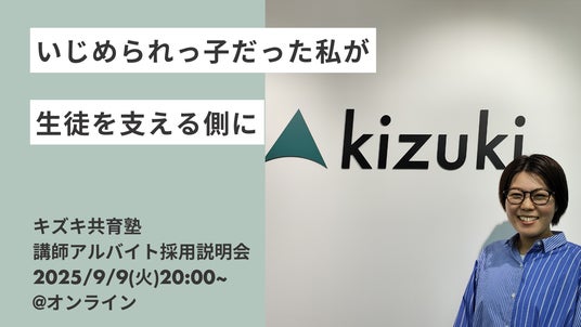 このたび、不登校支援で全国に拠点を展開する「キズキ共育塾」にて、講師アルバイト希望者向けのオンライン採用説明会を2025年9月9日(火)に開催します。