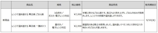 今回は、お米をよりおいしく、手軽に食べたいという思いに応える調理道具として、「レンジで温め直せる 萬古焼 ごはん鍋」を新たに開発しました。さらに、炊き立てのごはんの味わいを楽しむことができる「レンジで温め直せる 萬古焼 一膳おひつ」を同時発売します。