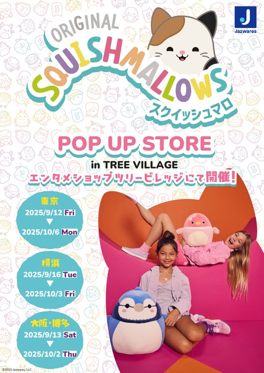 エンターテインメント関連商品を輸入・製造販売するインフォレンズ株式会社(本社:東京都中央区、代表取締役CEO:安川 洋)は、全世界60か国で販売され、SNSで話題の動物や食べ物をモチーフにした大人気のぬいぐるみ「Squishmallows(スクイッシュマロ)」のPOPUP STOREをツリービレッジ東京、横浜、大阪、福岡(博多)で開催することを発表いたします。